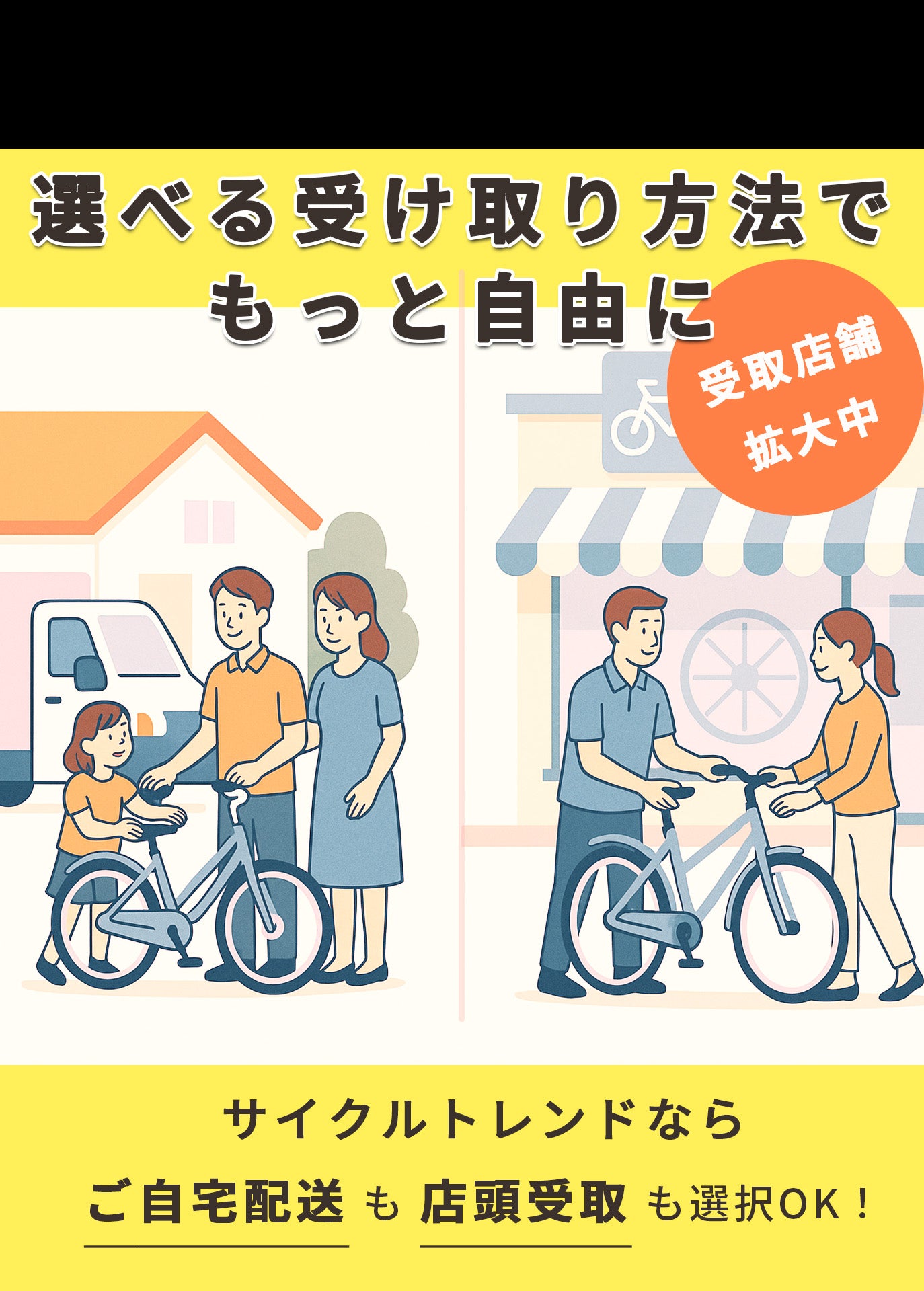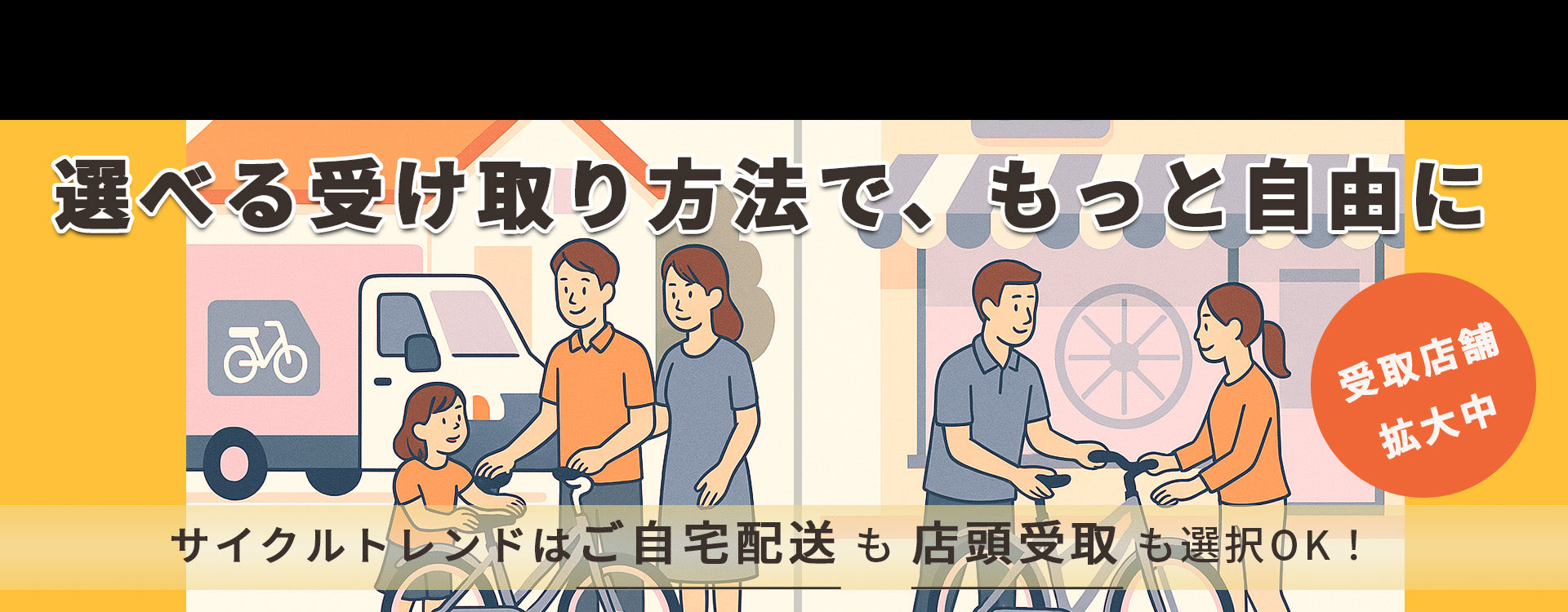 ご自宅への配送サービスまたは店頭受取をご希望に合わせてお選びいただけます。店舗情報はこちら→