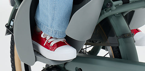 小柄な方でもフレームが低くてまたぎやすく、高身長の方でも足回りゆったり。サドルの上げ下げもラクで共用しやすさにこだわった設計です。