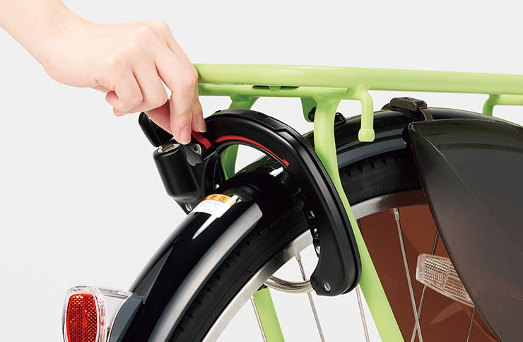 狭い駐輪場でも奥まで手を伸ばさなくてもOK!車体の後ろから操作しやすいリヤサークル錠。(※画像はPAS With)